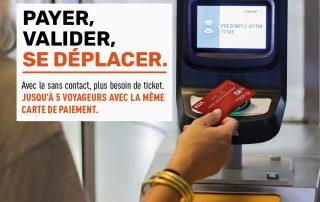 Le paiement sans contact permet désormais de valider jusqu’à 5 voyageurs avec un seul moyen de paiement (carte bancaire ou objet connecté). Le service est disponible sur l’ensemble des